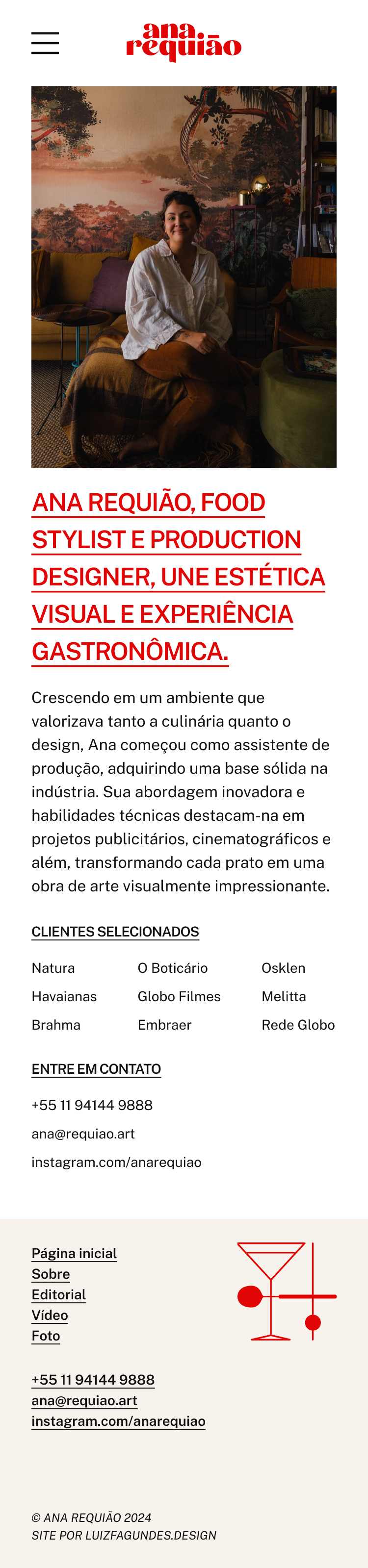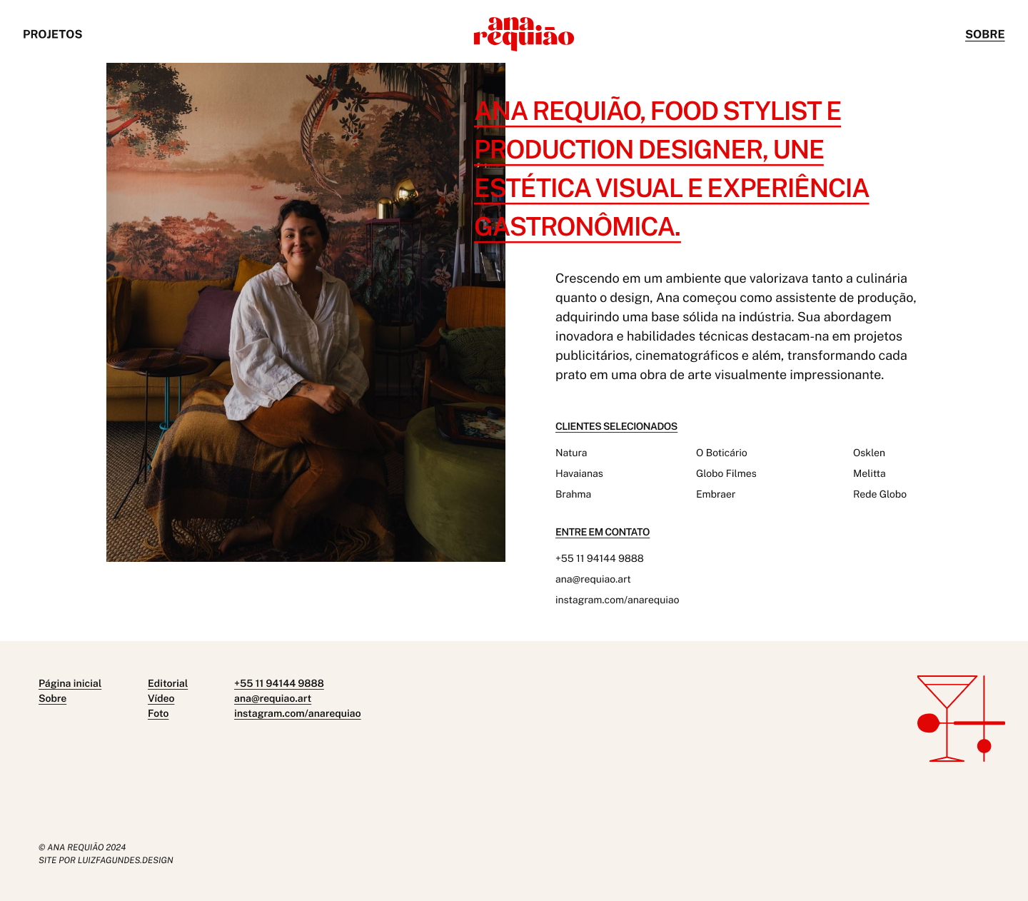 Ana Requião is a São Paulo-based production designer and food stylist with an extensive portfolio of work for major Brazilian brands. To showcase her best projects and provide potential clients with easy access to her work and contact information, we set out to create a clean, professional website.