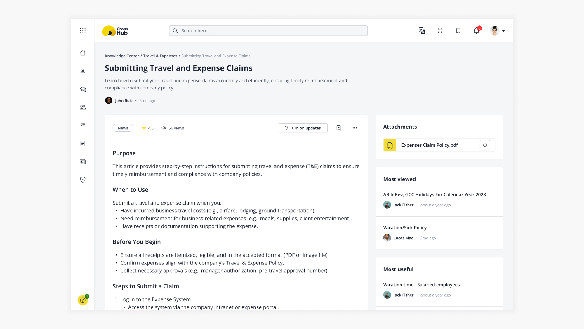 After a rapid growth, overlapping employee management tools emerged across different business units, creating inefficiency and a fragmented employee experience. Cheers Hub was conceived to address this challenge, aiming to centralize processes and information across the employee journey.